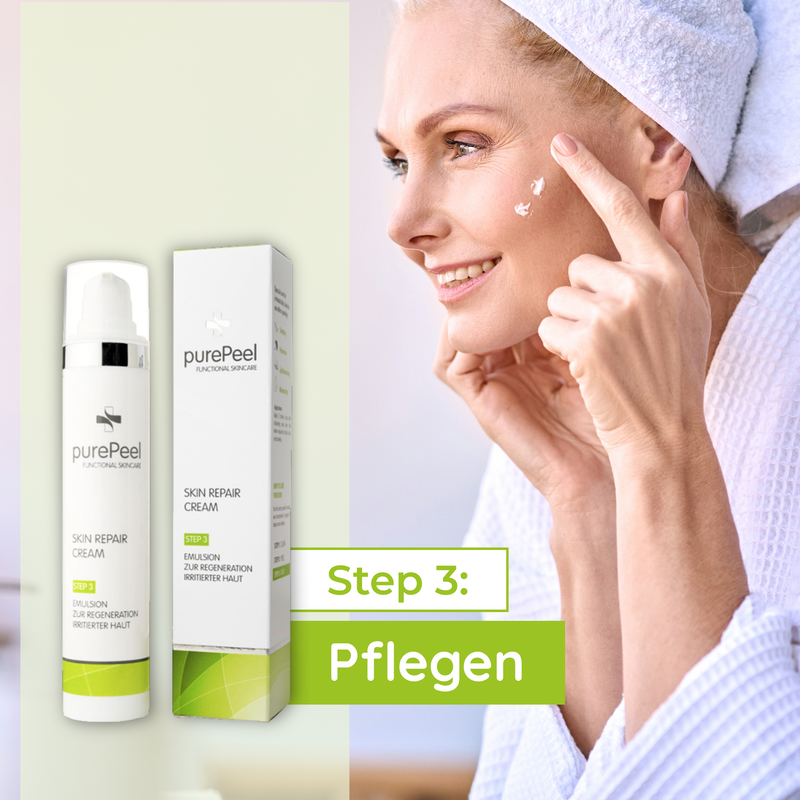 Wichtig ist, die Anwendungsempfehlungen zu beachten und die Haut nach dem Peeling mit einer beruhigenden Pflege wie der Skin Repair Cream zu unterstützen.